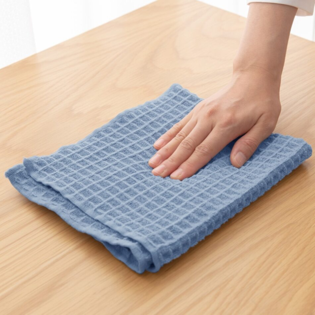 繊維と繊維の「すきま」のような細い空間に発生する「毛細管現象」によって抜群の吸水性を発揮し、素早く水を吸い取ります。ボリュームのあるワッフル生地に仕上げることで、約300ccの水を吸収※。食器の多いご家庭でも安心してご使用いただけます。※自社調べ、データは保証値ではなく実測値です