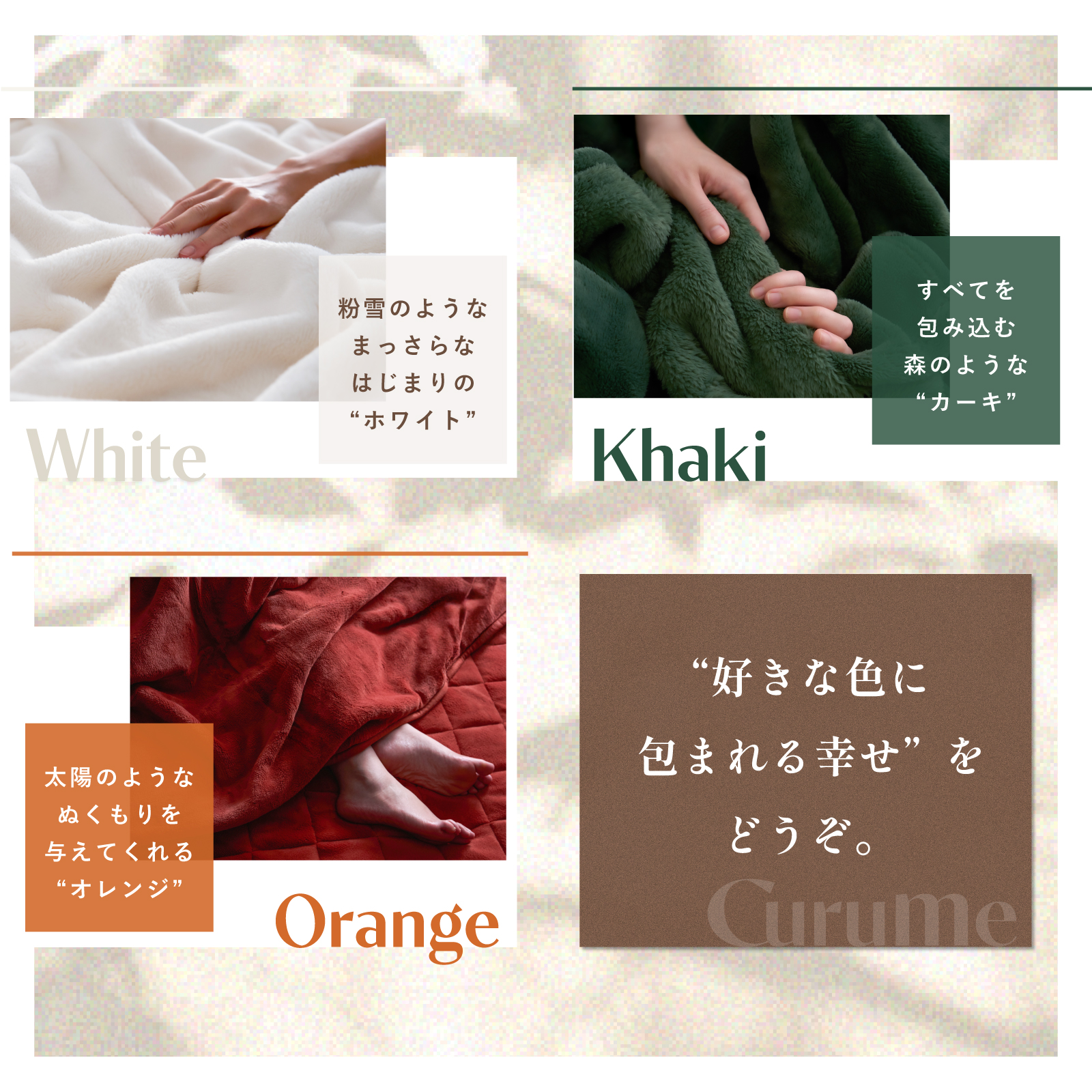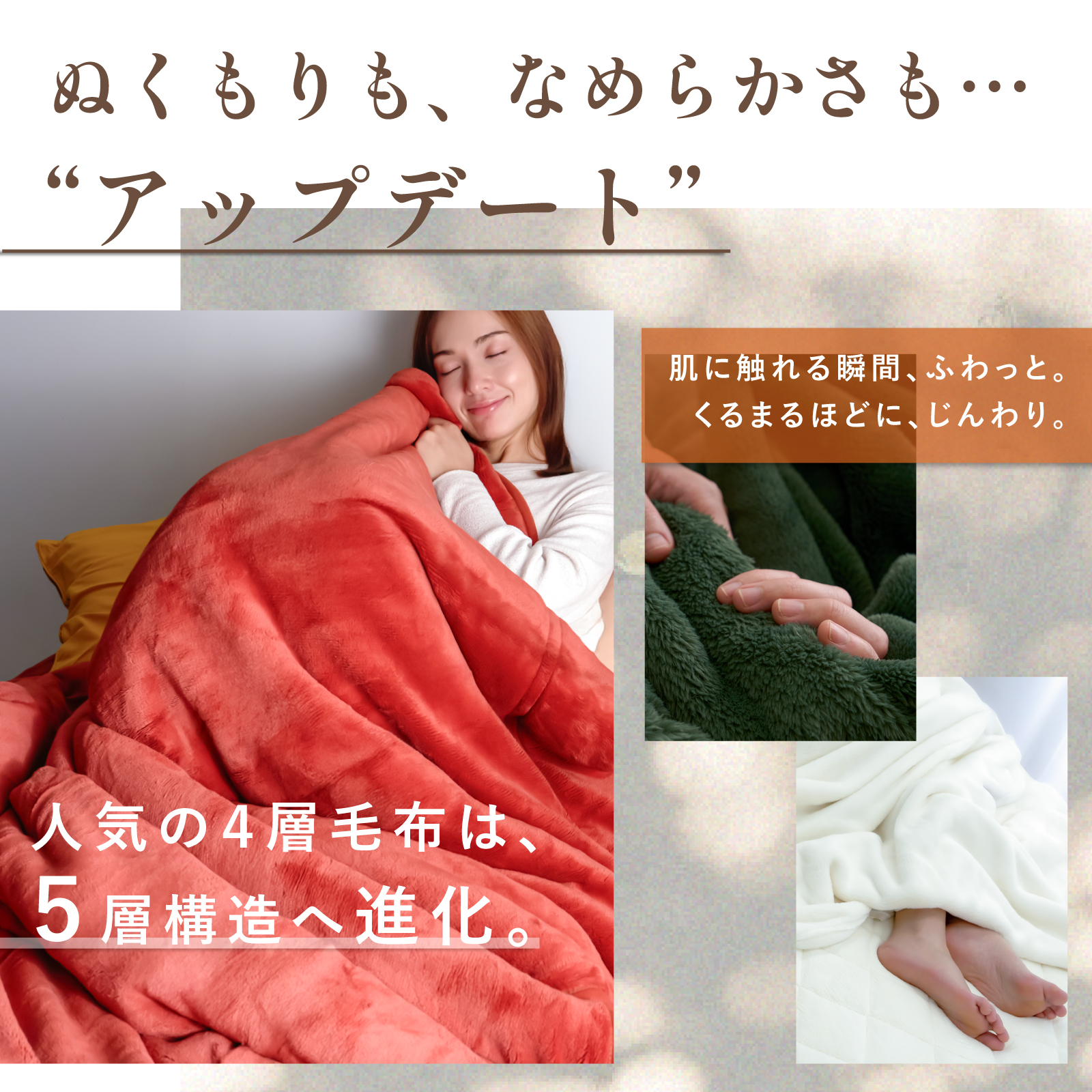 TOP寝具 Curume(クルミー)ふわふわ5層あったか毛布 価格: ¥5,999 (税込) ~ ¥9,999 (税込) [ポイント還元 60ポイント~] 販売期間: サイズ / カラー アイボリー ライトグレー モカブラウン スモーキーピンク チャコールグレー ホワイト オレンジ カーキ シングル セミダブル ダブル クイーン キング 価格: - 数量: 枚 サイズカラー価格在庫シングルアイボリー¥5,999(税込)204枚ライトグレー¥5,999(税込)184枚モカブラウン¥5,999(税込)165枚スモーキーピンク¥5,999(税込)94枚チャコールグレー¥5,999(税込)184枚ホワイト¥5,999(税込)276枚オレンジ¥5,999(税込)114枚カーキ¥5,999(税込)279枚セミダブルアイボリー¥6,999(税込)67枚ライトグレー¥6,999(税込)97枚モカブラウン¥6,999(税込)68枚スモーキーピンク¥6,999(税込)70枚チャコールグレー¥6,999(税込)63枚ホワイト¥6,999(税込)60枚オレンジ¥6,999(税込)25枚カーキ¥6,999(税込)61枚ダブルアイボリー¥7,999(税込)80枚ライトグレー¥7,999(税込)72枚モカブラウン¥7,999(税込)79枚スモーキーピンク¥7,999(税込)70枚チャコールグレー¥7,999(税込)55枚ホワイト¥7,999(税込)39枚オレンジ¥7,999(税込)11枚カーキ¥7,999(税込)43枚クイーンアイボリー¥8,999(税込)43枚ライトグレー¥8,999(税込)43枚モカブラウン¥8,999(税込)39枚スモーキーピンク¥8,999(税込)38枚チャコールグレー¥8,999(税込)37枚ホワイト¥8,999(税込)15枚オレンジ¥8,999(税込)9枚カーキ¥8,999(税込)19枚キングアイボリー¥9,999(税込)47枚ライトグレー¥9,999(税込)44枚モカブラウン¥9,999(税込)48枚スモーキーピンク¥9,999(税込)40枚チャコールグレー¥9,999(税込)45枚ホワイト¥9,999(税込)18枚オレンジ¥9,999(税込)10枚カーキ¥9,999(税込)18枚 5.0 (2件)